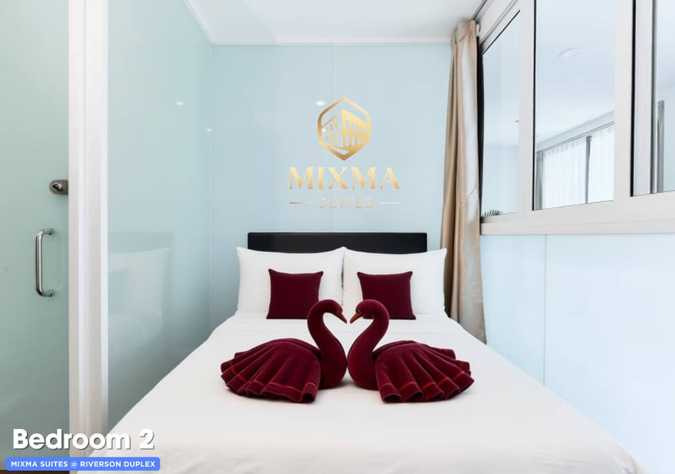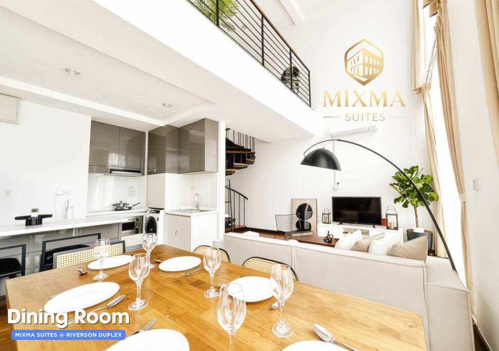 Stay at Mixma Suites @ Riverson Duplex Kota Kinabalu, a stylish 2-bedroom serviced apartment next to Imago Shopping Mall. This modern duplex offers a spacious living area, full kitchen, washer-dryer, and bathtub with city views. Ideal for family stays, business trips, or long-term rentals, just minutes from KK Waterfront, Night Market, and Jesselton Point. Experience the best Kota Kinabalu accommodation with comfort, space, and convenience.