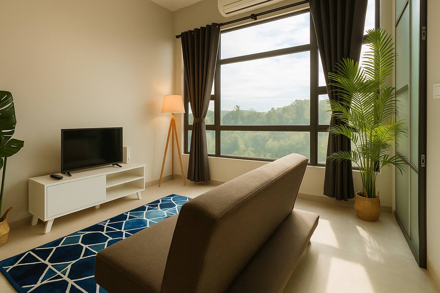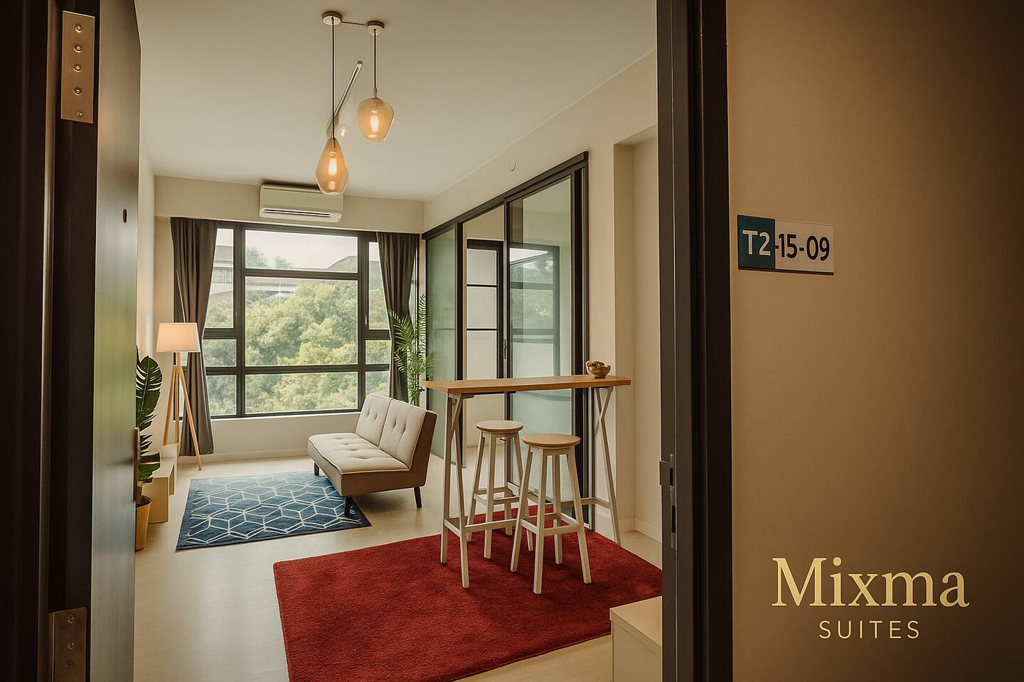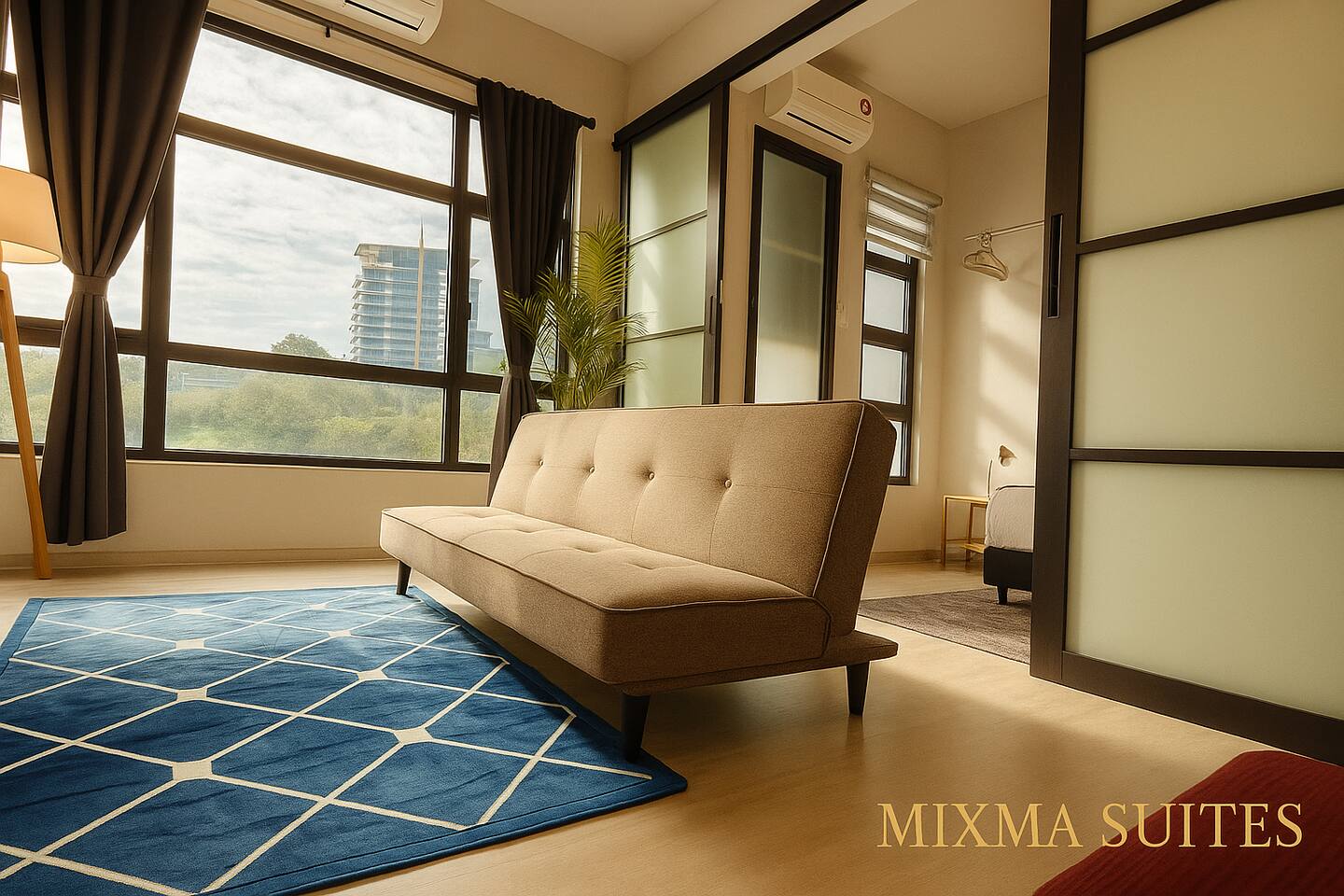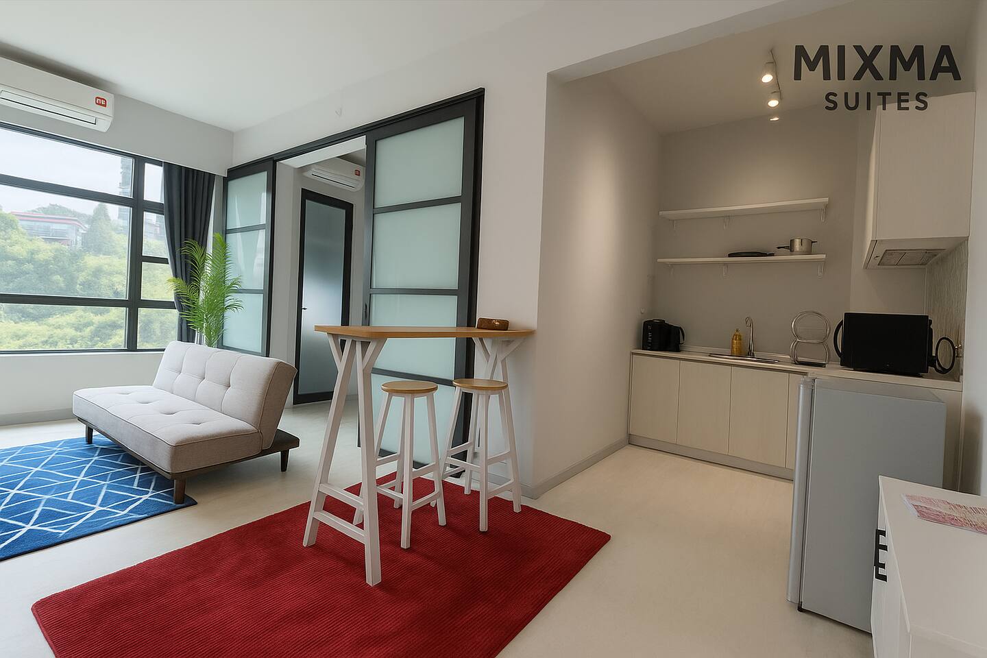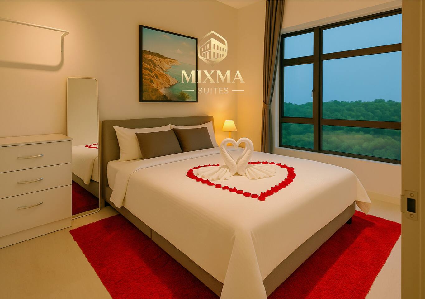 Mixma Suites @ Jesselton Quay Kota Kinabalu est un appartement cosy de 46 m² avec vue sur la montagne, idéal pour couples, familles ou amis (jusqu’à 4 personnes). Il dispose d’1 lit Queen, 1 lit Super Single et 1 canapé-lit, WiFi gratuit, Smart TV, climatisation et kitchenette. Accès à la célèbre piscine Sunset avec vue mer et à la salle de sport. À quelques pas de Jesselton Point, Suria Sabah et Gaya Street. Décoration lune de miel disponible sur demande.