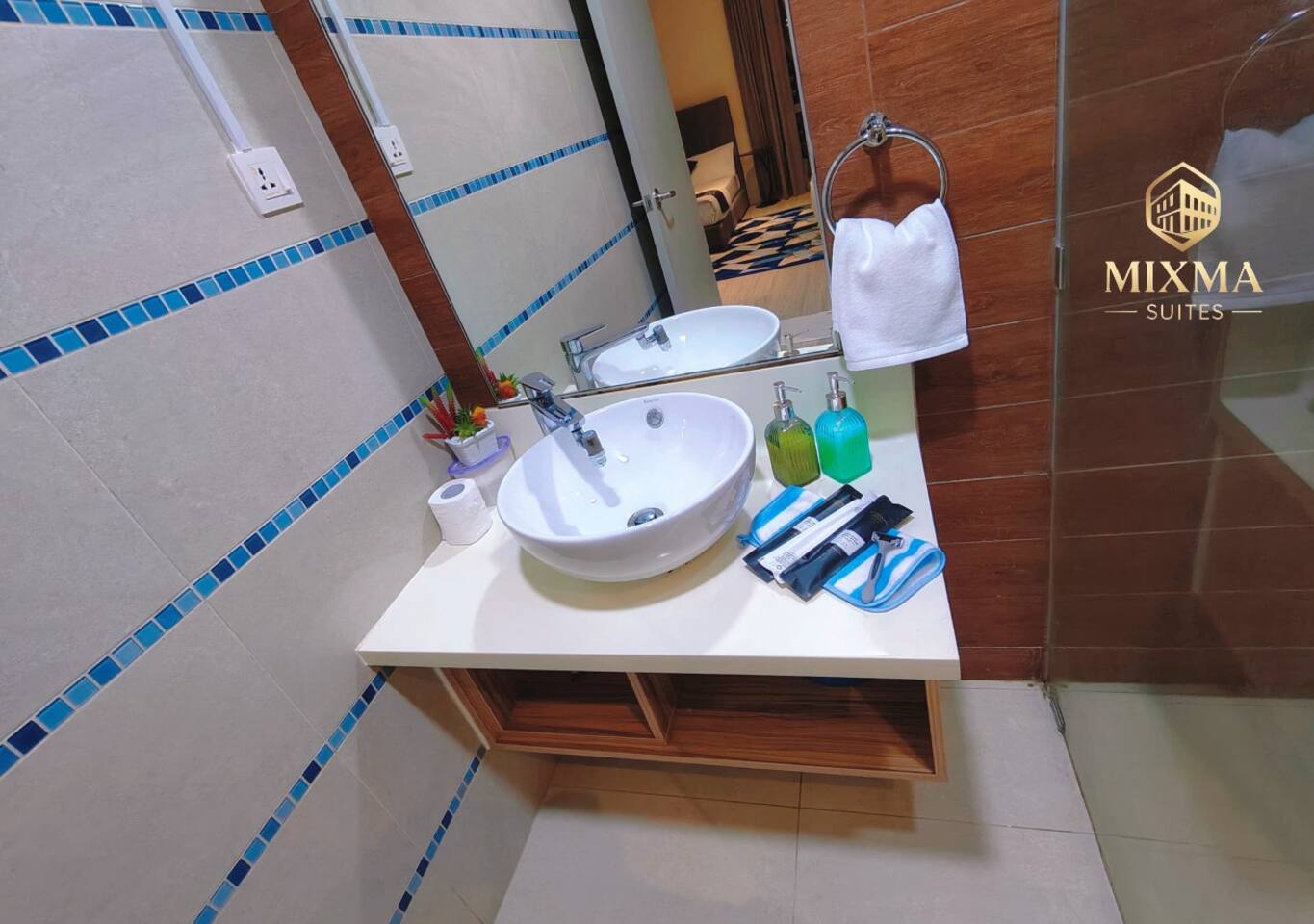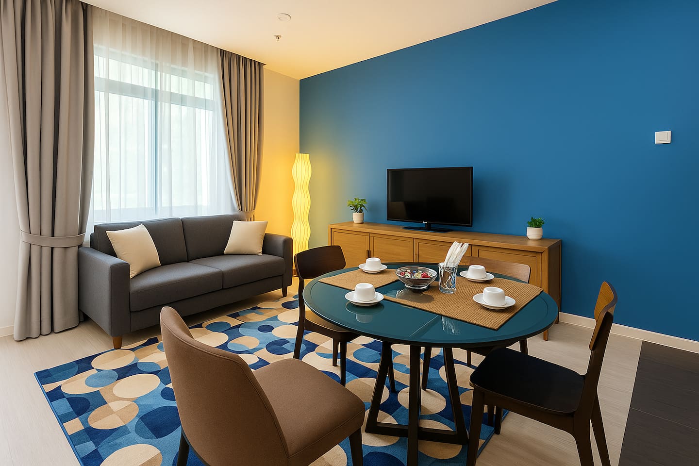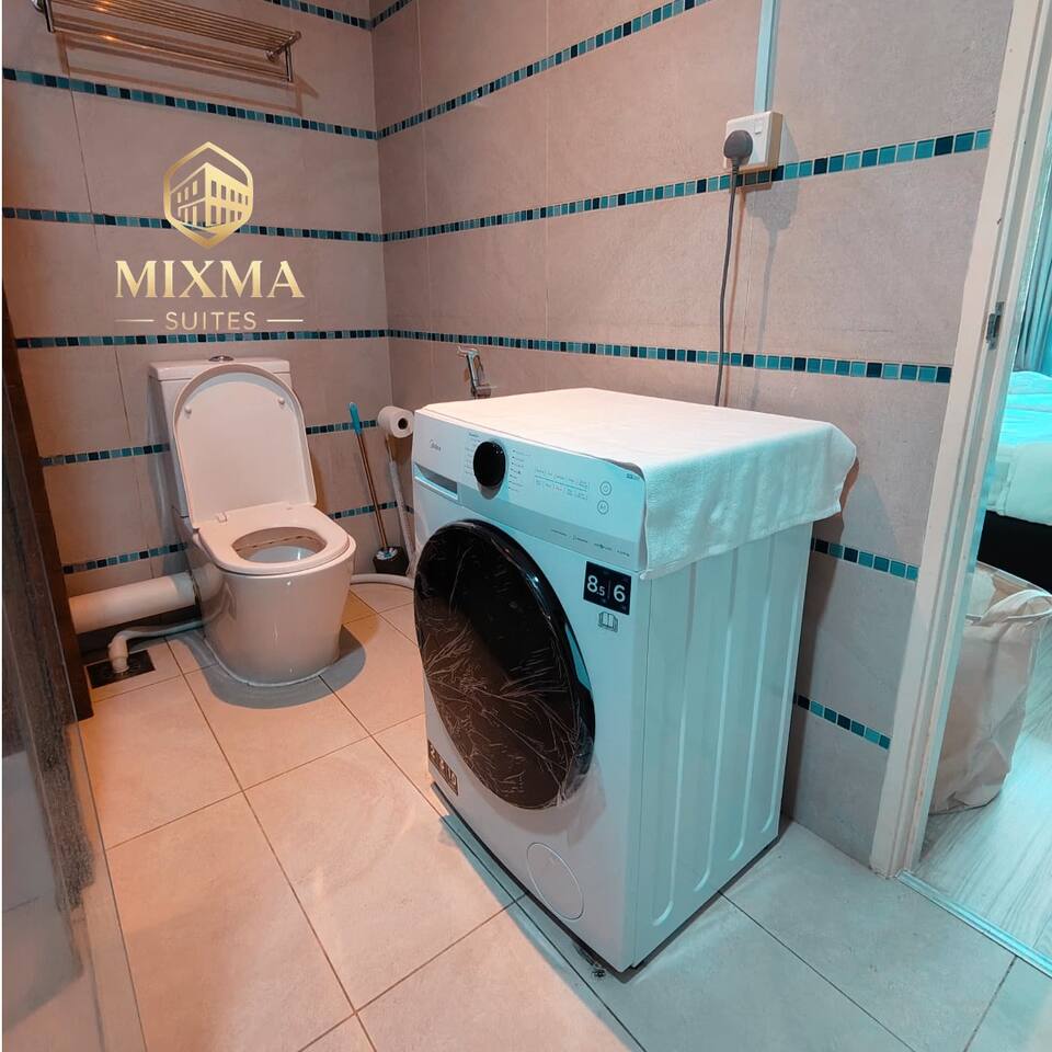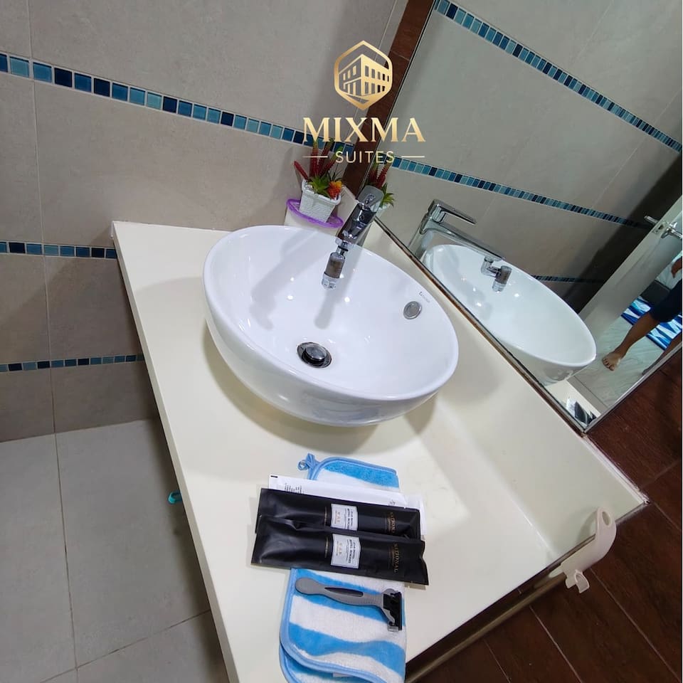 Our suite features a spacious bedroom with premium bedding, a cozy living area with 2 sofas and smart TV (Netflix ready), and a fully equipped kitchenette for light cooking. Guests can relax with high-speed WiFi, air-conditioning, and hotel-standard amenities. Large windows provide natural light and views of Kota Kinabalu’s skyline or sea view, making your stay both comfortable and memorable.