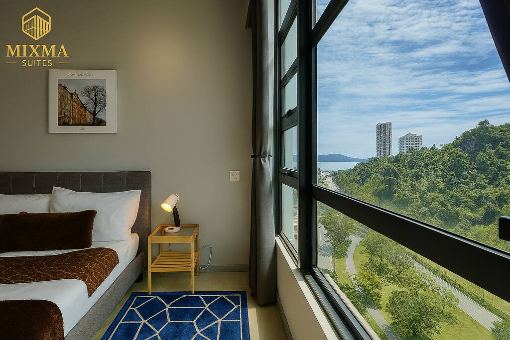 Mixma Suites @ Jesselton Quay Kota Kinabalu is a cozy 500 sqft mountain-view apartment, perfect for couples, families, or friends (sleeps up to 4). Features 1 Queen, 1 Super Single & 1 Sofa bed, free WiFi, Smart TV, air-conditioning, and kitchenette. Guests enjoy access to the iconic Sunset Pool with seaviews & gym. Located steps from Jesselton Point, Suria Sabah & Gaya Street. Honeymoon theme setup available on request.