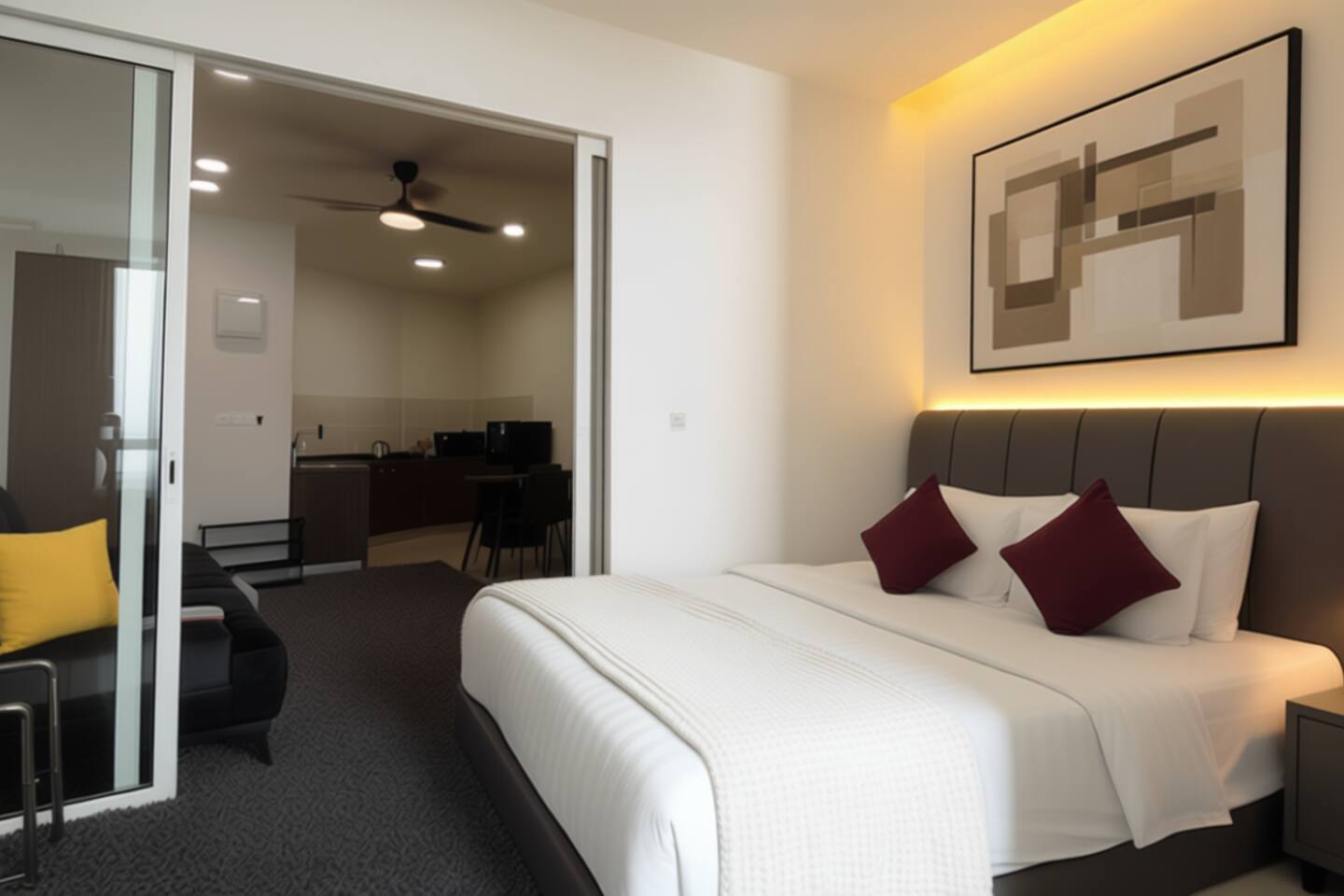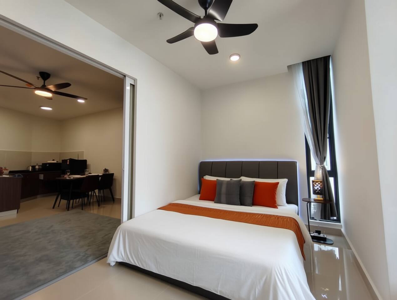 Step into a stylish seaview apartment at The Shore Kota Kinabalu, managed by Mixma Suites. This cozy one-bedroom unit features a queen bed and a sofa bed, comfortably accommodating up to 4 guests. Enjoy a relaxing stay with a Smart TV + Free Netflix, fast WiFi, air-conditioning, and a well-equipped kitchenette with basic cooking utensils, fridge, and dining area. The apartment also includes a modern bathroom with water heater, fresh towels, and hotel-grade linens for your comfort. Perfect for couples, friends, or small families, this unit offers a peaceful retreat with a beautiful sea and city view right from your window — just a short walk to Filipino Market, Central Market, and Jesselton Point. Guests also have access to the building’s infinity pool, gym, and on-site parking (hourly rate) for a complete urban resort experience.