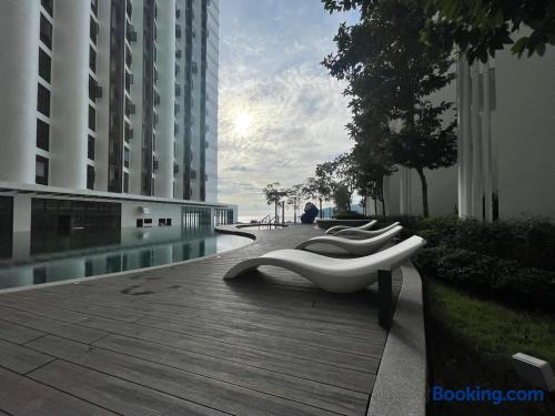 Welcome to Mixma Suites @ The Shore Kota Kinabalu, a stylish seaview apartment in Kota Kinabalu. Sleep soundly on a queen bed or sofa bed, ideal for couples, friends, or families. Unwind in the cozy living room with Smart TV + Free Netflix Ready, or light cook in the fully equipped kitchen. Steps away from the Filipino Market, waterfront, malls, and Jesselton Jetty, this apartment offers comfort with Wi-Fi, air-conditioning, and building facilities for a perfect KK stay.